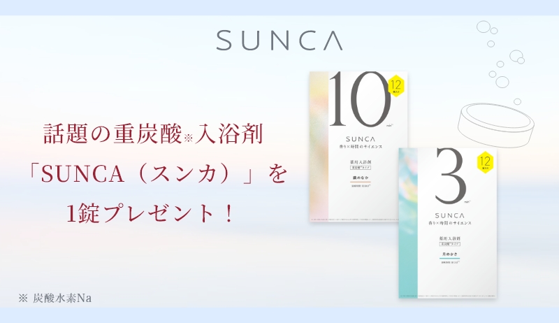 話題の入浴剤「SUNCA(スンカ)」を、1錠プレゼント中!